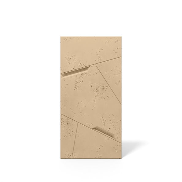 Subtelne wyniesienia rysują lekką, „kosmiczną” mapę. Relief pracuje światłem, zmieniając odbiór ściany w zależności od kierunku i natężenia oświetlenia. Zastosowania: ściany akcentowe, lobby/recepcje, korytarze, strefy wejścia, sypialnie; wybrane aplikacje zewnętrzne zgodnie z wytycznymi montażu. Atuty techniczne: beton architektoniczny barwiony w masie, wysoka trwałość, spójna kolorystyka, modułowość ułatwiająca projektowanie.