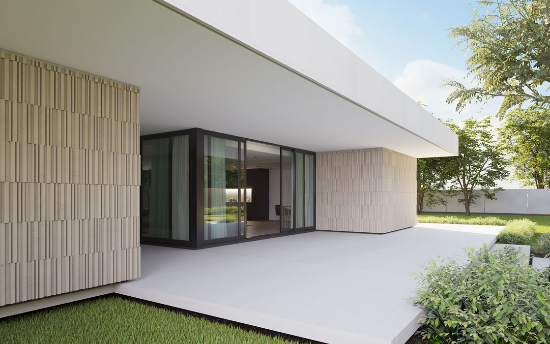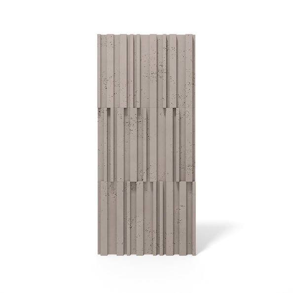 Poziome ryflowania wydłużają optycznie ścianę i wprowadzają horyzontalny spokój. Relief pracuje światłem, zmieniając odbiór ściany w zależności od kierunku i natężenia oświetlenia. Zastosowania: ściany akcentowe, lobby/recepcje, korytarze, strefy wejścia, sypialnie; wybrane aplikacje zewnętrzne zgodnie z wytycznymi montażu. Atuty techniczne: beton architektoniczny barwiony w masie, wysoka trwałość, spójna kolorystyka, modułowość ułatwiająca projektowanie.