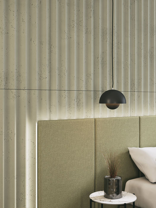Delikatna sekwencja nacięć o różnym kroku – subtelny, graficzny rysunek. Relief pracuje światłem, zmieniając odbiór ściany w zależności od kierunku i natężenia oświetlenia. Zastosowania: ściany akcentowe, lobby/recepcje, korytarze, strefy wejścia, sypialnie; wybrane aplikacje zewnętrzne zgodnie z wytycznymi montażu. Atuty techniczne: beton architektoniczny barwiony w masie, wysoka trwałość, spójna kolorystyka, modułowość ułatwiająca projektowanie.