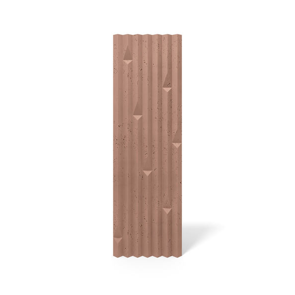Zmienna głębokość żłobień podkreśla grę światła – efekt żywej poświaty. Relief pracuje światłem, zmieniając odbiór ściany w zależności od kierunku i natężenia oświetlenia. Zastosowania: ściany akcentowe, lobby/recepcje, korytarze, strefy wejścia, sypialnie; wybrane aplikacje zewnętrzne zgodnie z wytycznymi montażu. Atuty techniczne: beton architektoniczny barwiony w masie, wysoka trwałość, spójna kolorystyka, modułowość ułatwiająca projektowanie.