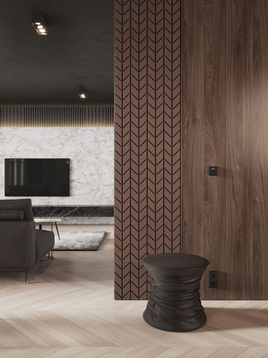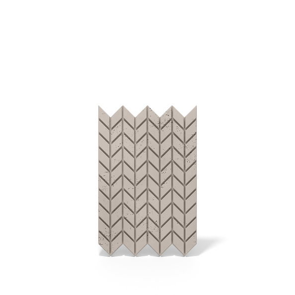Skala „mini” pozwala tworzyć misterny rysunek jodełki na mniejszych ścianach. Relief pracuje światłem, zmieniając odbiór ściany w zależności od kierunku i natężenia oświetlenia. Zastosowania: ściany akcentowe, lobby/recepcje, korytarze, strefy wejścia, sypialnie; wybrane aplikacje zewnętrzne zgodnie z wytycznymi montażu. Atuty techniczne: beton architektoniczny barwiony w masie, wysoka trwałość, spójna kolorystyka, modułowość ułatwiająca projektowanie.