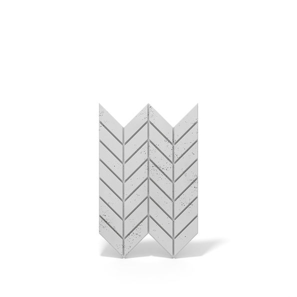 Podwójny „ząb” w jednym module – przyspiesza rytm kompozycji. Relief pracuje światłem, zmieniając odbiór ściany w zależności od kierunku i natężenia oświetlenia. Zastosowania: ściany akcentowe, lobby/recepcje, korytarze, strefy wejścia, sypialnie; wybrane aplikacje zewnętrzne zgodnie z wytycznymi montażu. Atuty techniczne: beton architektoniczny barwiony w masie, wysoka trwałość, spójna kolorystyka, modułowość ułatwiająca projektowanie.